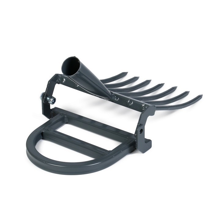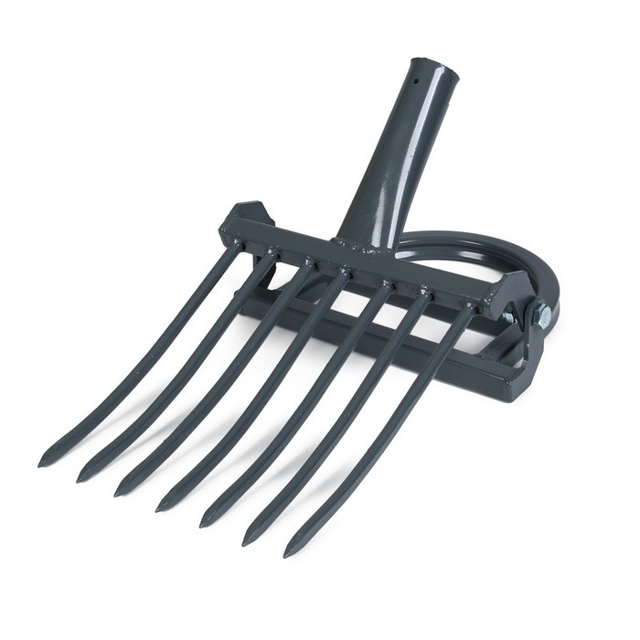 Это устройство представляет собой вилы с частыми зубьями, которые соединены с педалью шарнирами. Она работает как рычаг, снимая при этом нагрузку со спины и рук садовода.