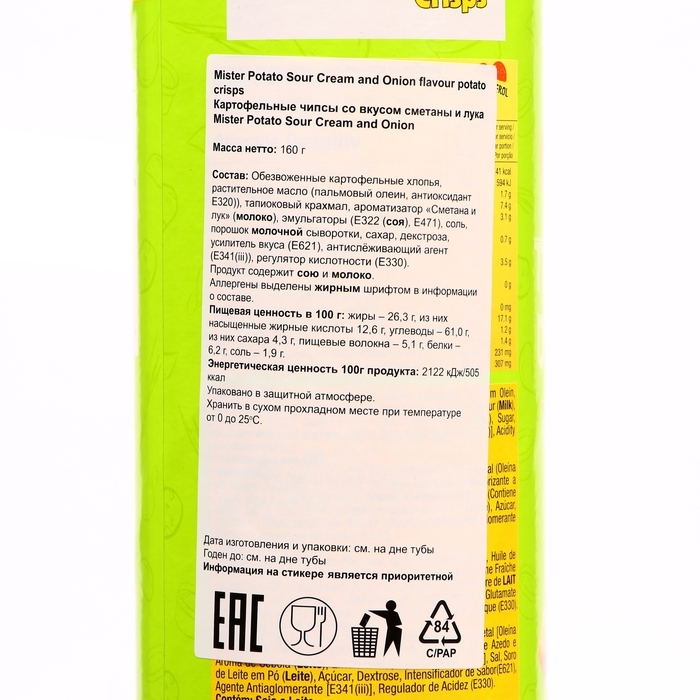 Mister Potato — бренд № 1 в категории снэков в Мазайзии. Не содержит холестерола и трансжиров. Натуральная морская соль. Сырье — 100% импорт из Германии.
