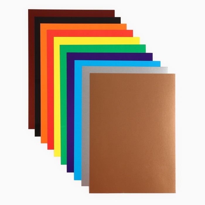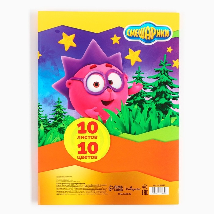 Картон цветной, А4, 10 листов, 10 цветов, мелованный, односторонний, в папке, 240 г/м², Смешарики