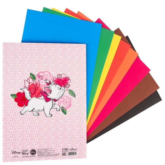 Картон цветной, А4, 8 листов, 8 цветов, немелованный, односторонний, в папке, 220 г/м², Коты Аристократы