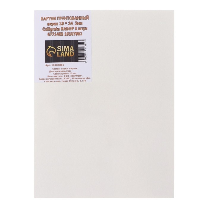 Картон грунтованный 18 х 24 см, толщина 2 мм, акриловый грунт, Calligrata, в наборе 9 шт.