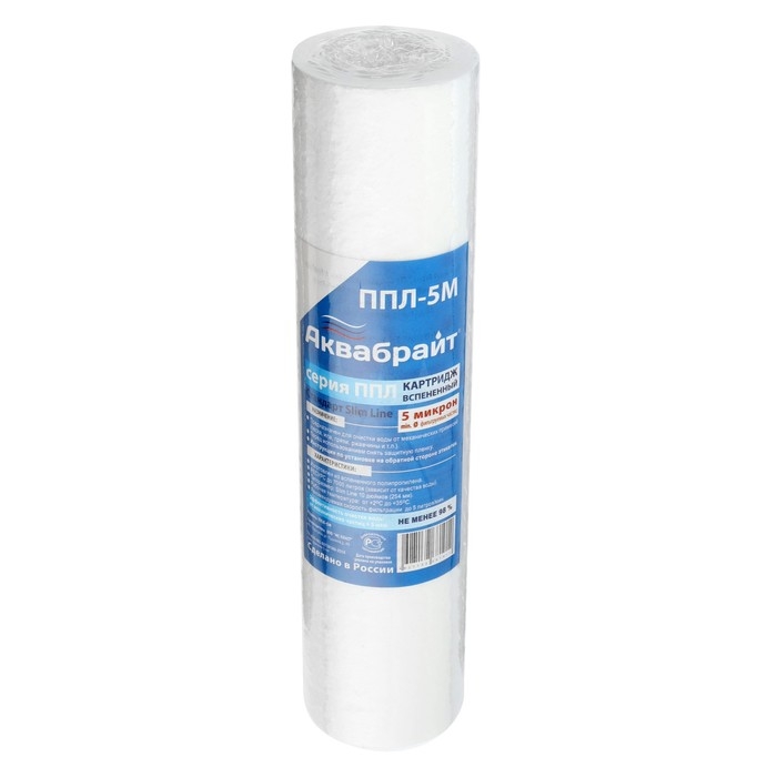 Картридж "Аквабрайт" ППЛ-5 М, 10" SL, полипропиленовый, для холодной воды, 5 мкм