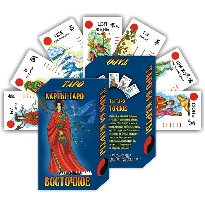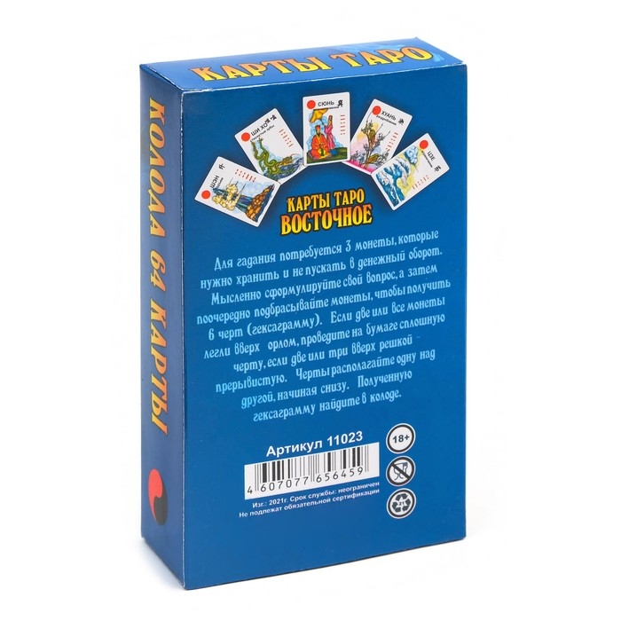 ТАРО Восточное - состоит из 64 гадальных картонных карт и инструкции.