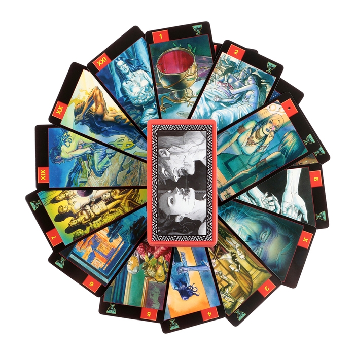 В Готическом Таро Вампиров метафорически представлено противостояние между любовью и насилием, темнотой ночи и светом дня. Вампиры здесь олицетворяют хрупкое равновесие между миром чувств и сферой природных инстинктов. Значения карт Таро проецируются на реальный мир, где жажда вампира символизирует ненасытность и жадность человека, страсть и любовь вампира — эмоциональную и чувственную сферу жизни людей, а одиночество и холодность — черты характера.Готическое Таро вампиров подходит не только для тарологов, но и для помогающих практиков, позволяя работать с теневой стороной личности и использовать её как ресурс. Эта колода станет отличным подарком для всех, кто интересуется гаданием и предсказаниями, а также для тех, кто хочет улучшить свою жизнь, используя знания о себе и окружающем мире.
