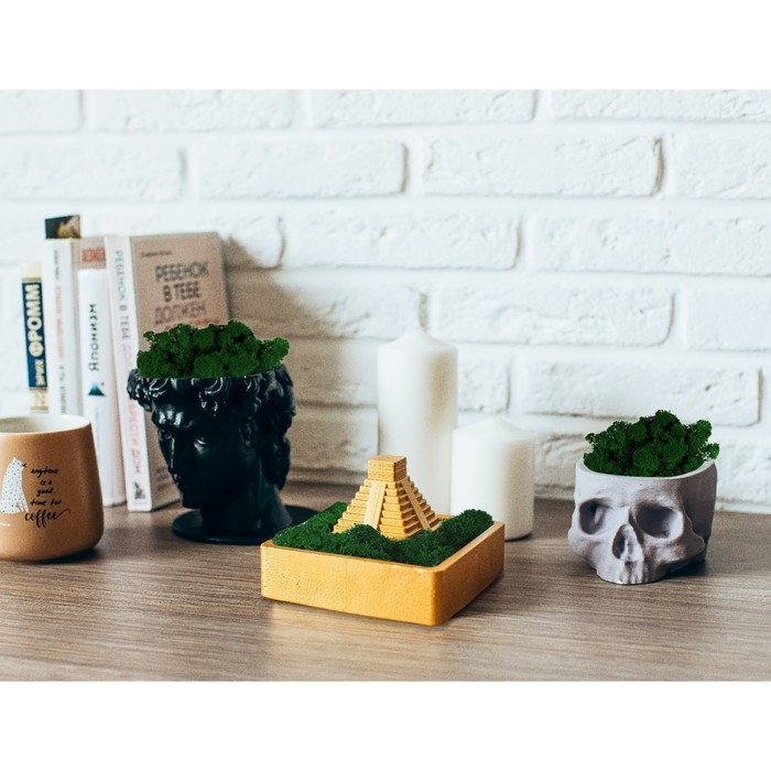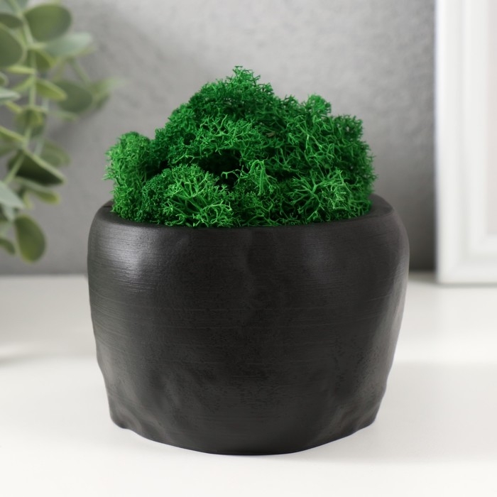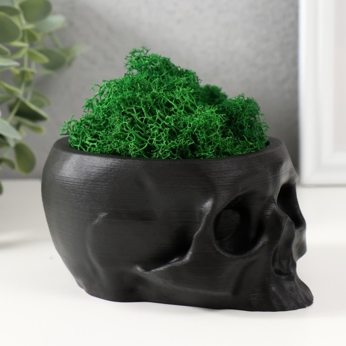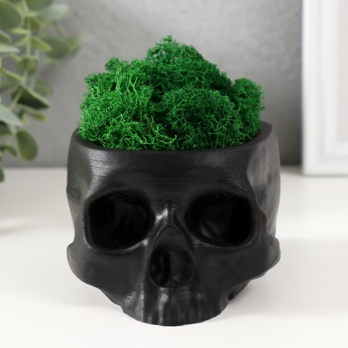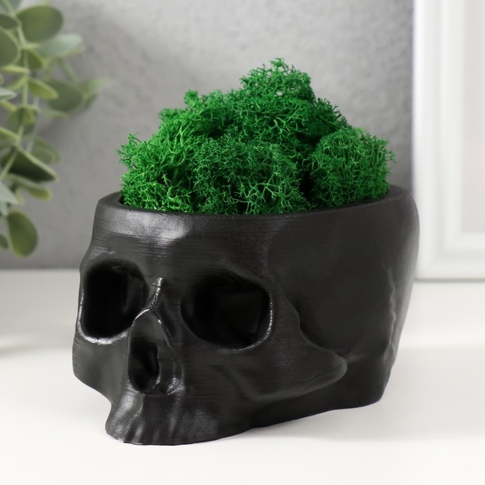 Кашпо бетонное "Череп" со мхом черный 13х9х6,5 см (мох зеленый стабилизированный)