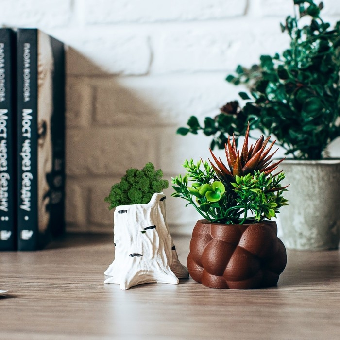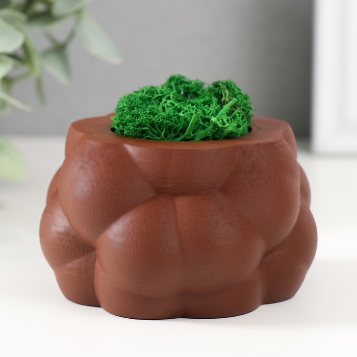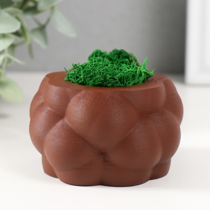 Кашпо бетонное "Пузырьки" со мхом коричневый 8х8х5см (мох зеленый стабилизированный)