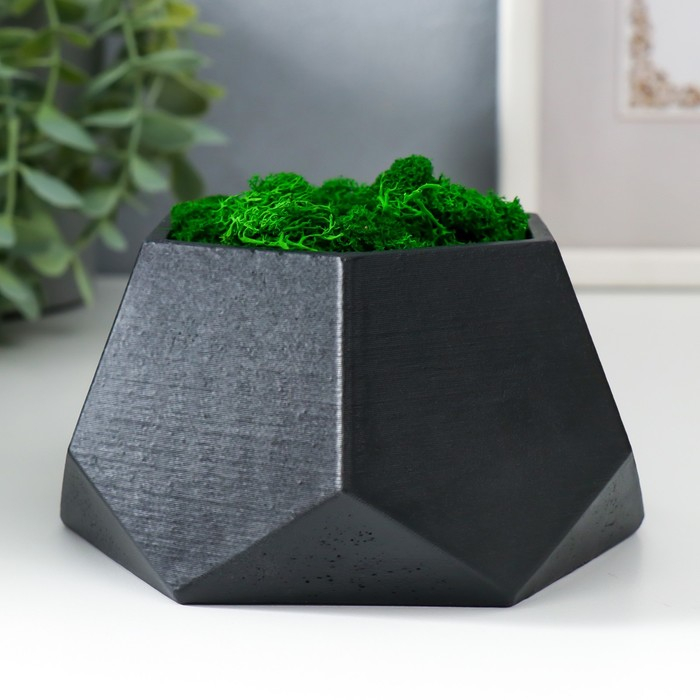 Кашпо бетонное "Шестиугольник" высота 6,5 см черное со мхом (мох зеленый стабилизированный)