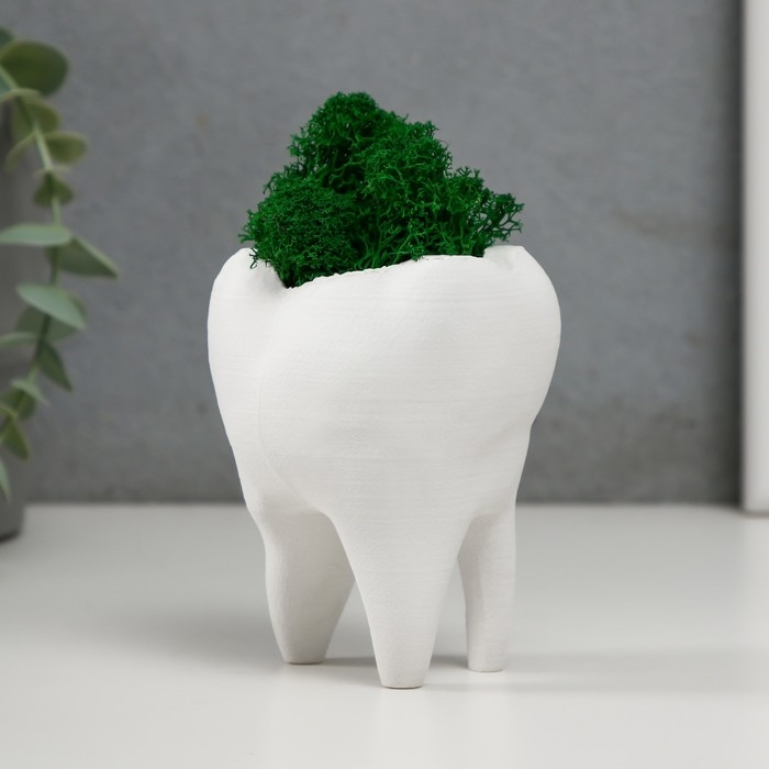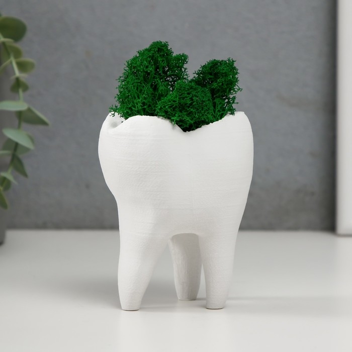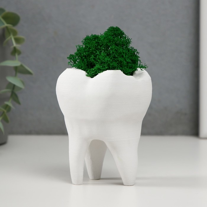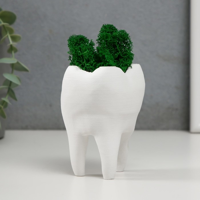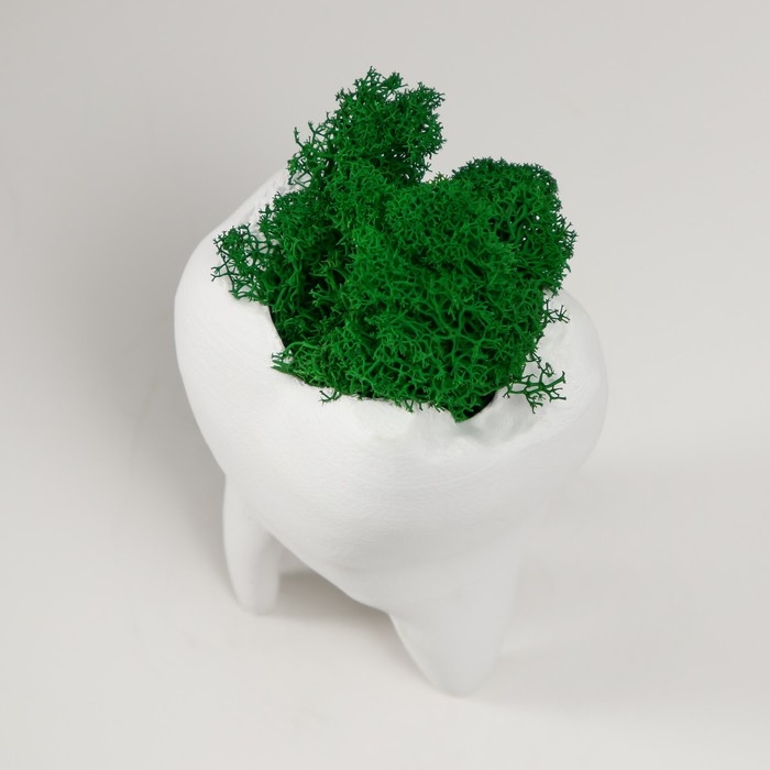 Кашпо бетонное "Зуб" со мхом белый 7,5х6,5х9,5 см (мох зеленый стабилизированный)