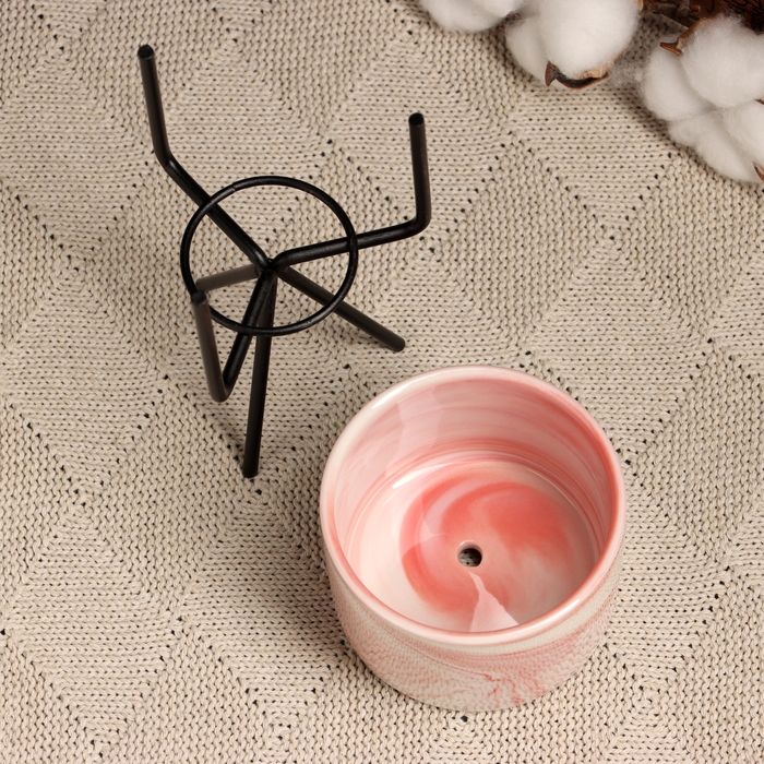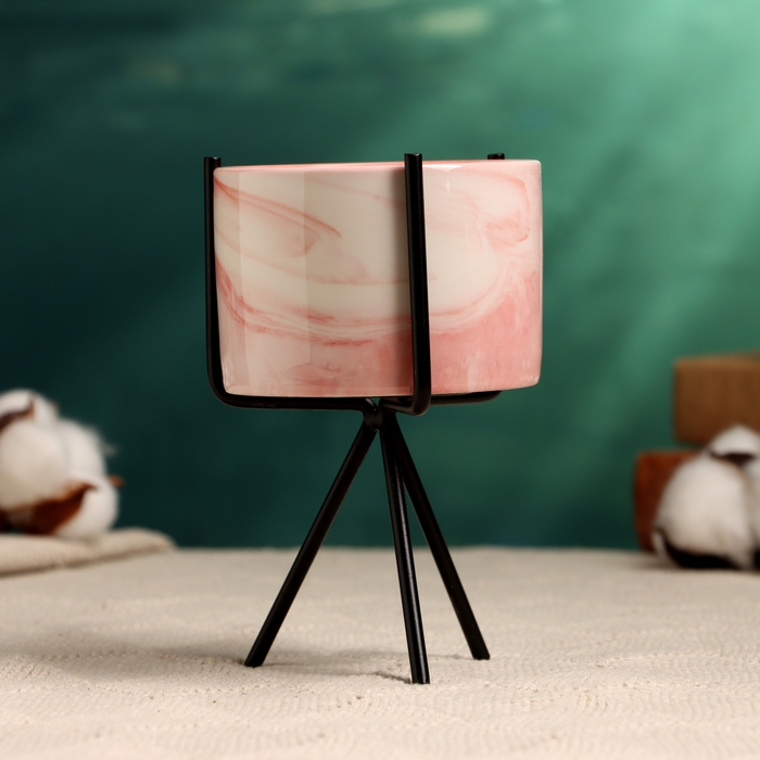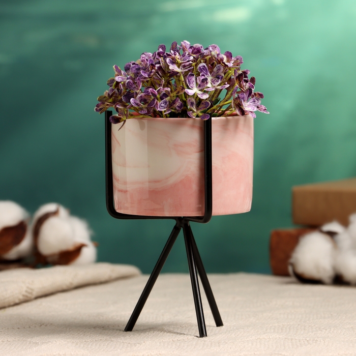 Кашпо "Цилиндр" розовое, на черной подставке, 13х8см