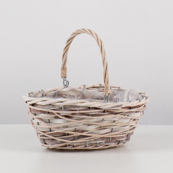Кашпо «Цветы», с ручкой, бежевое, 24х15х9/15 см