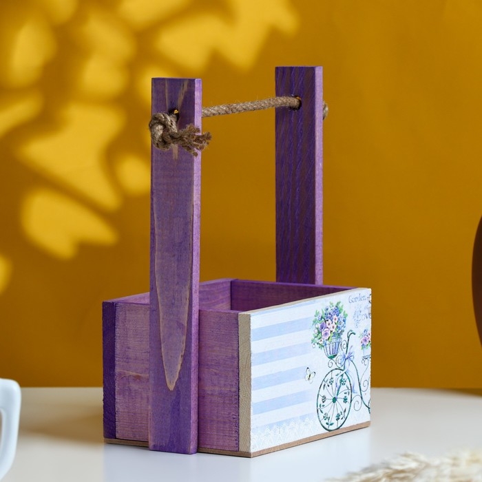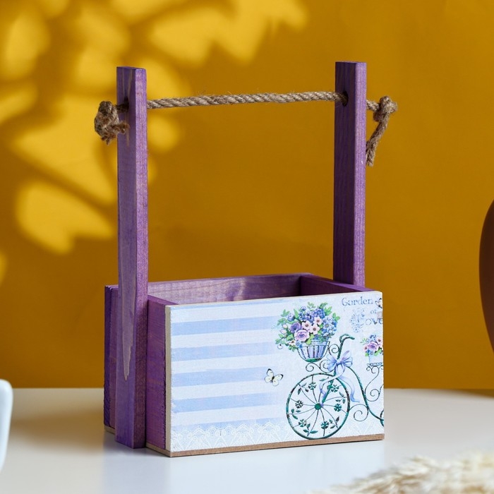 Кашпо деревянное, 15×12×8.5(25) см "Пауль и Любовь. Прованс, велосипед", с принтом