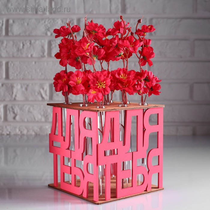 Кашпо деревянное 15×15×15 см с 9 колбами "Для тебя", морёный розовый Дарим Красиво