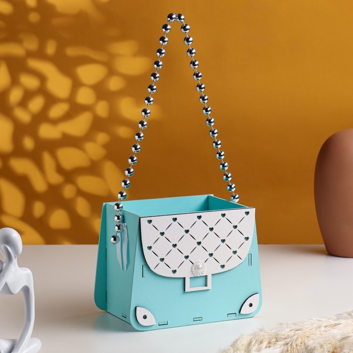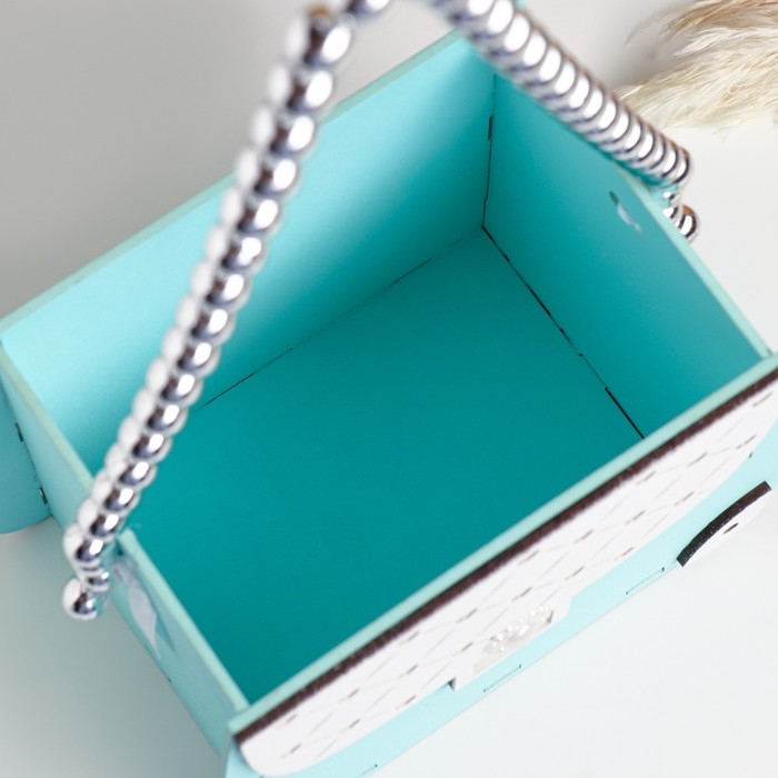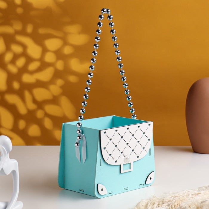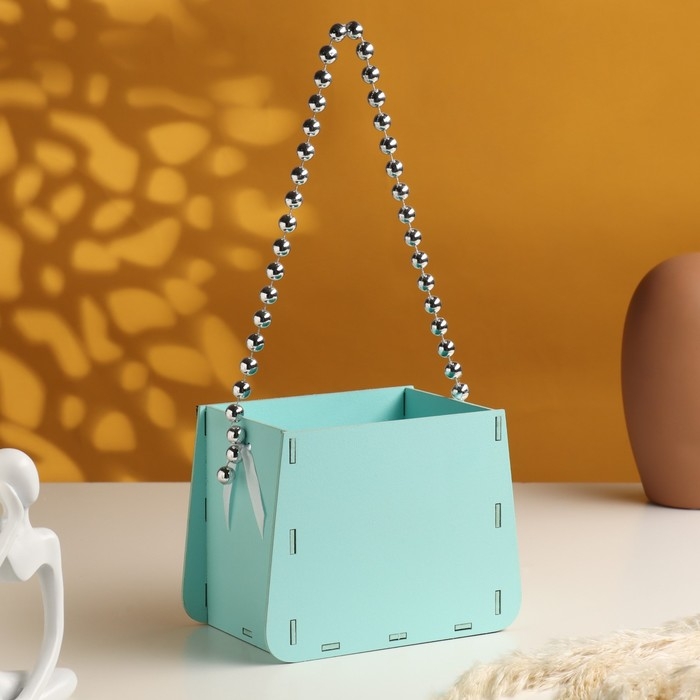 Кашпо деревянное 15,5х10х12 см "Сумочка", тиффани пастель-серебро