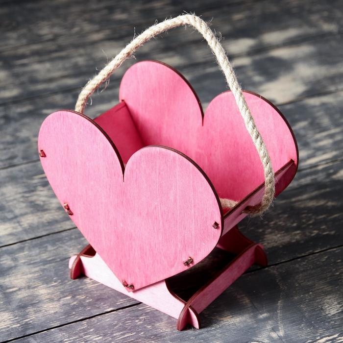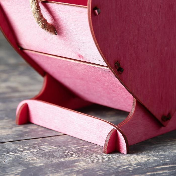 Кашпо деревянное 17.7×10.5×15 см уникальное "Сердце на двоих", ручка верёвка, бордовый
