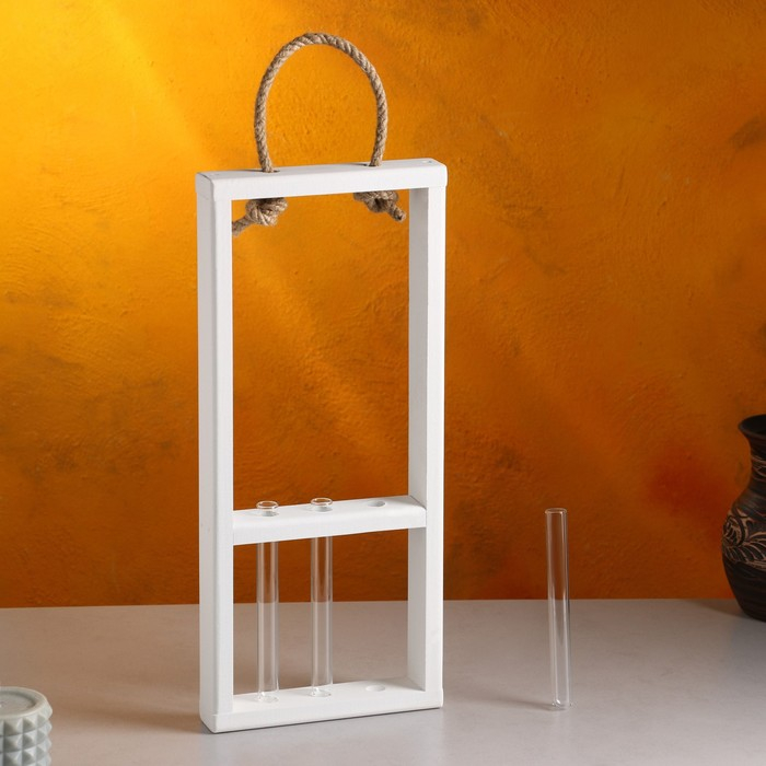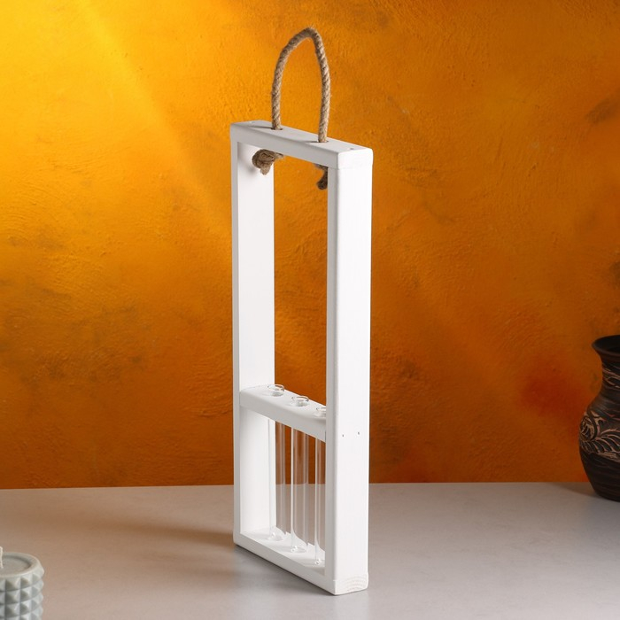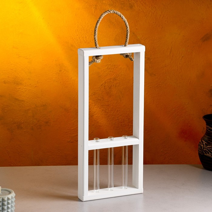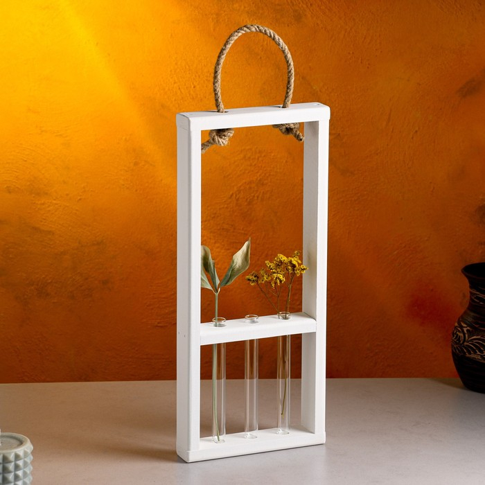 Кашпо деревянное 18×5×40 см с 3 колбами 15 см "Рамка Экстра", ручка, белый Дарим Красиво