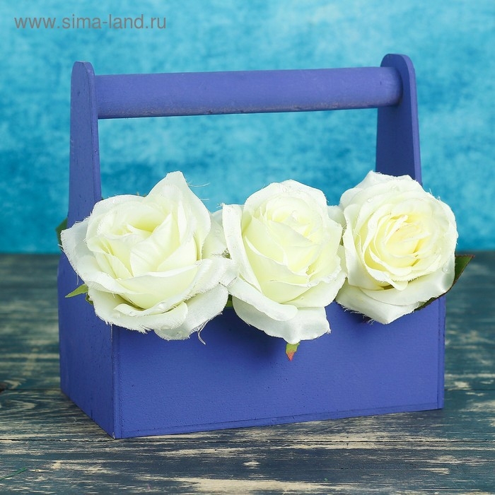 Кашпо деревянное 20×12.5×20 см Стелла Моно, с ручкой, фиолетовый Дарим Красиво