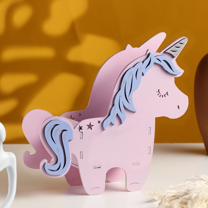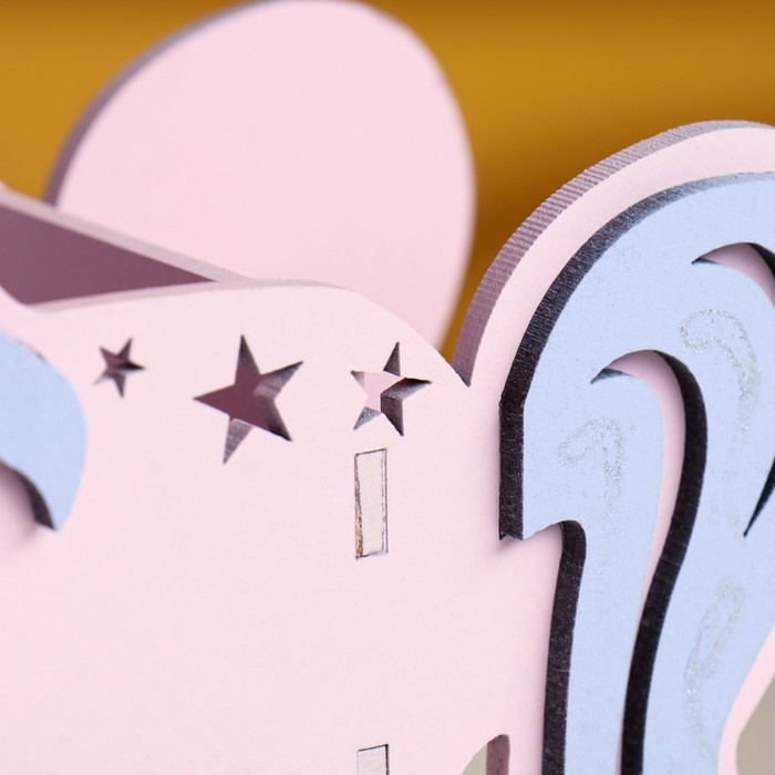 Кашпо деревянное 21.5×7×21 см уникальное "Единорог", розовый сиреневый
