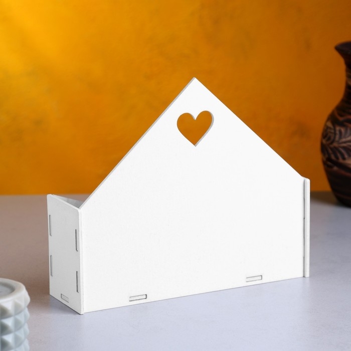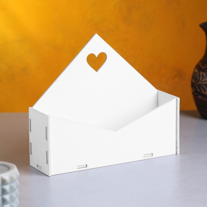Кашпо деревянное 21×6×18 см Конверт "Доброе Сердце", белый Дарим Красиво