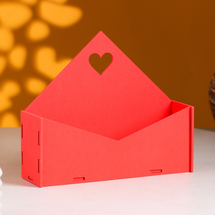 Кашпо деревянное 21×6×18 см Конверт "Доброе Сердце", красный Дарим Красиво