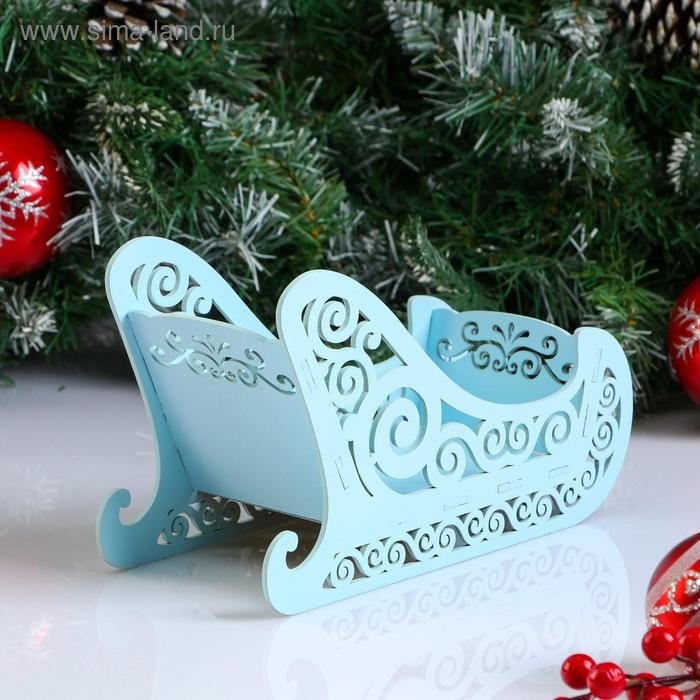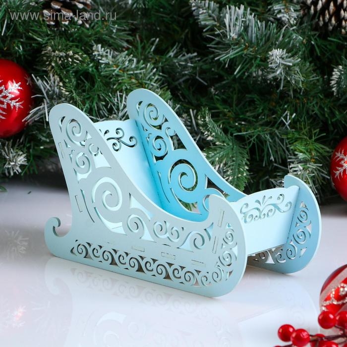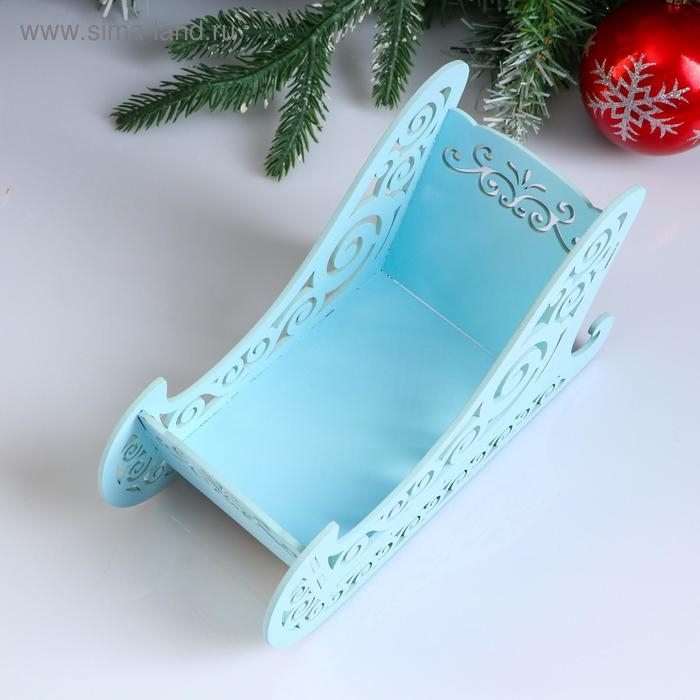 Кашпо деревянное, 23×10×14 см "Новогоднее. Санки", подарочная упаковка, голубая пастель