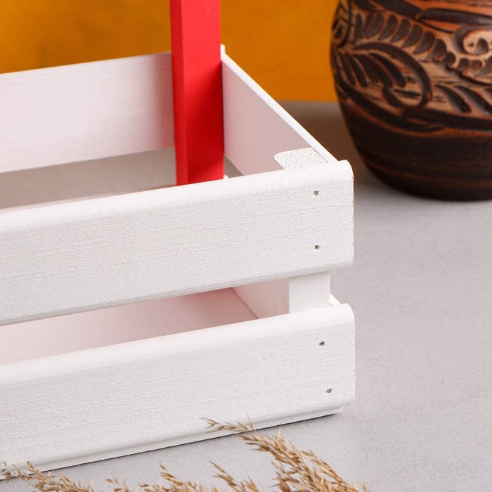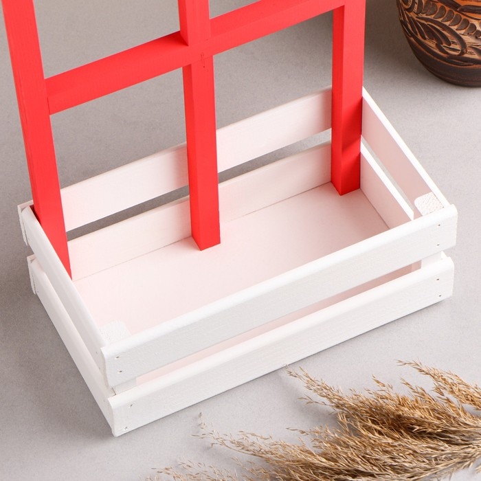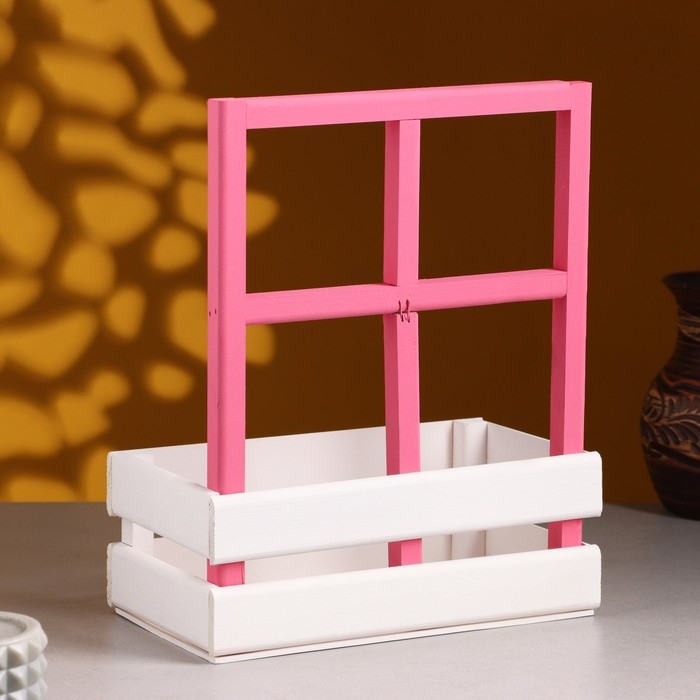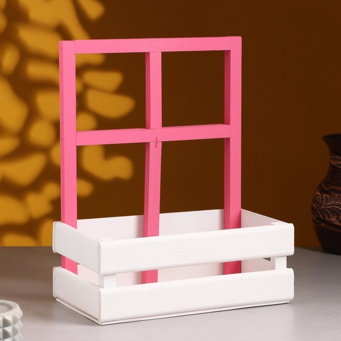 Кашпо деревянное 25×18×30 см "Букет под окном", с ручкой, белый розовый