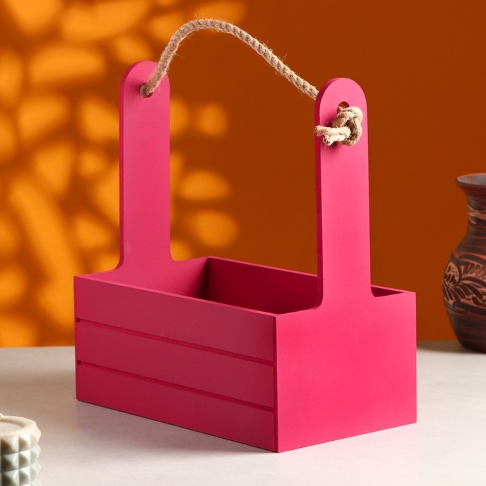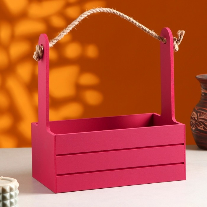 Кашпо деревянное 25.5×15×30 см "Аром", ручка канат, Бордо