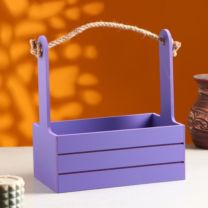 Кашпо деревянное 25.5×15×30 см "Аром", ручка канат, Фиолетовый
