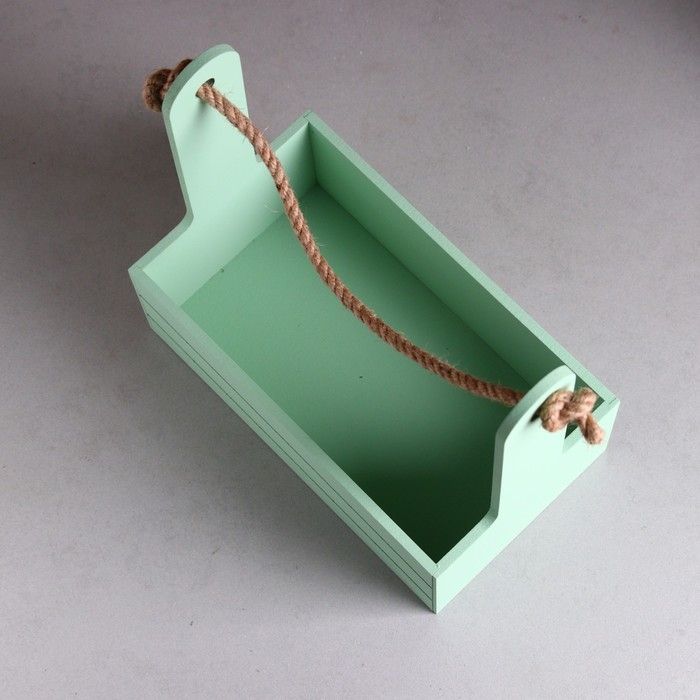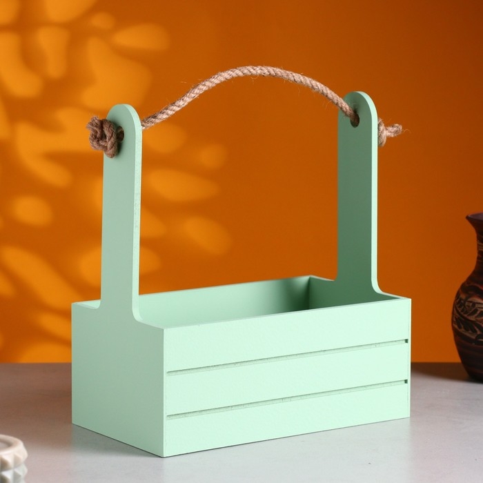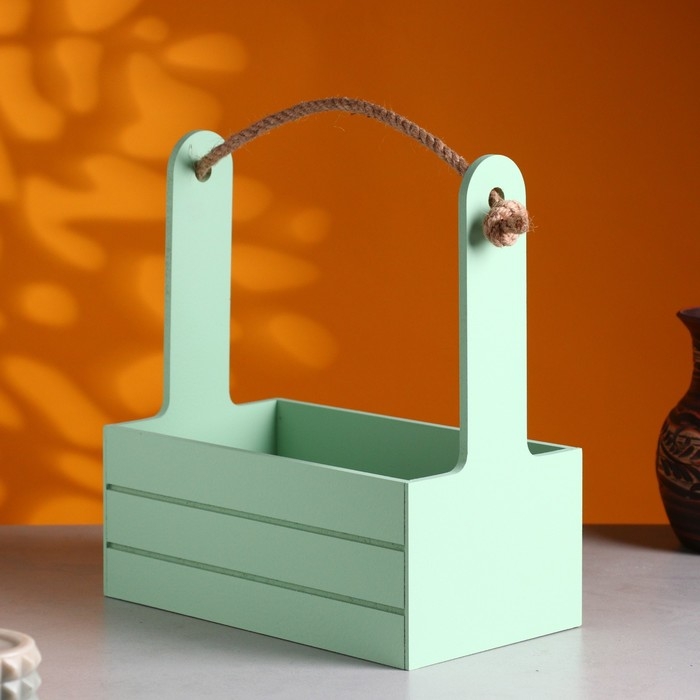 Кашпо деревянное 25.5×15×30 см "Аром", ручка канат, Оливковый