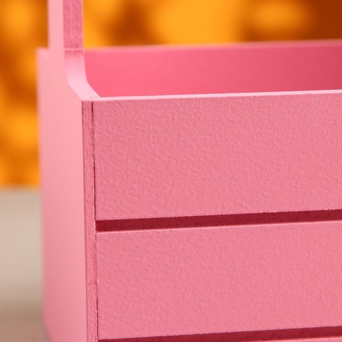 Кашпо деревянное 25.5×15×30 см "Аром", ручка канат, Розовый Коралл