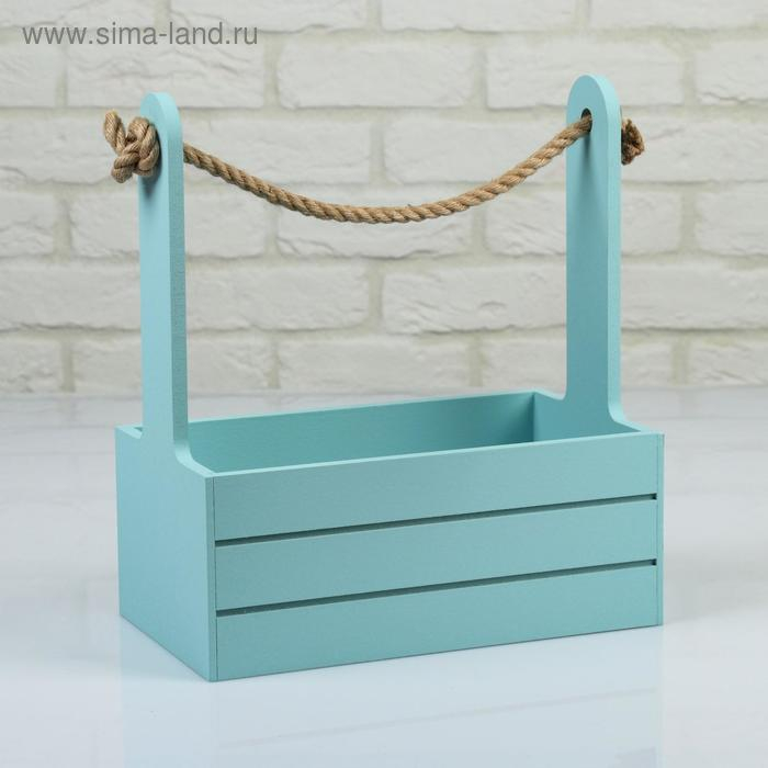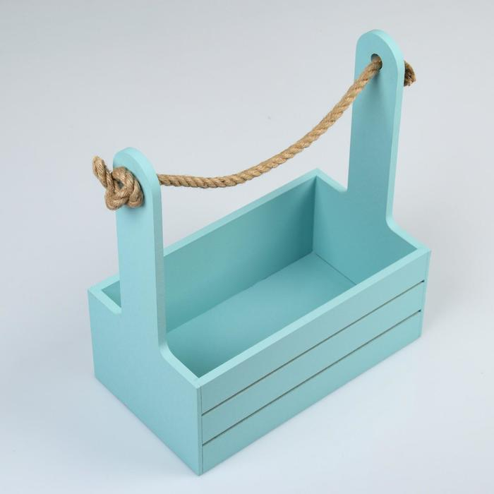 Кашпо деревянное 25.5×15×30 см "Аром", ручка канат, серо-голубое