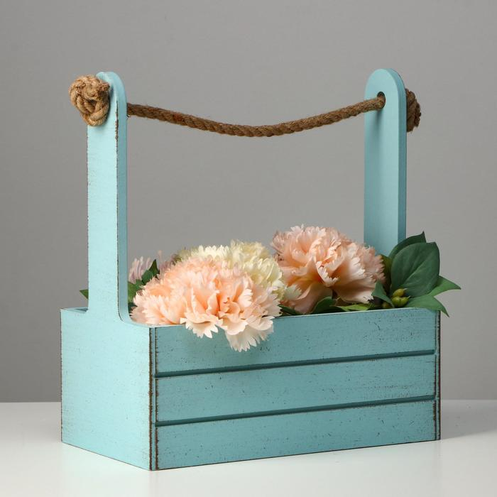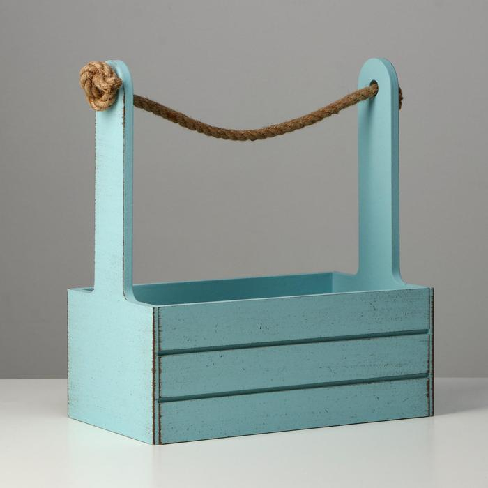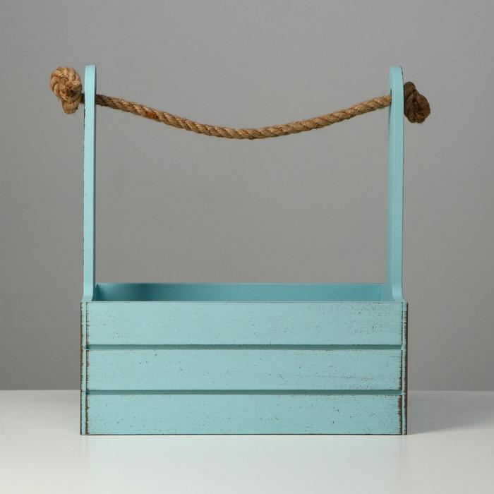 Кашпо деревянное 25.5×15×30 см "Прованс", ручка канат, серо-голубой