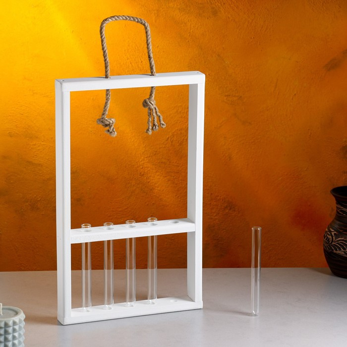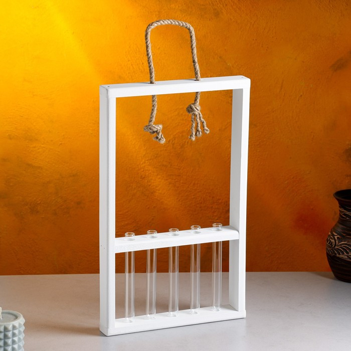 Кашпо деревянное 26×5×40 см с 5 колбами 15 см "Рамка Экстра Слим", белый Дарим Красиво