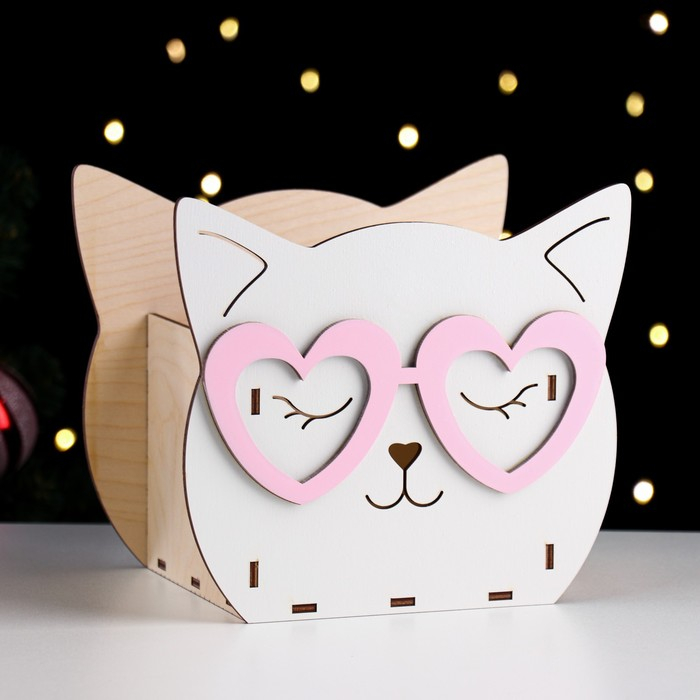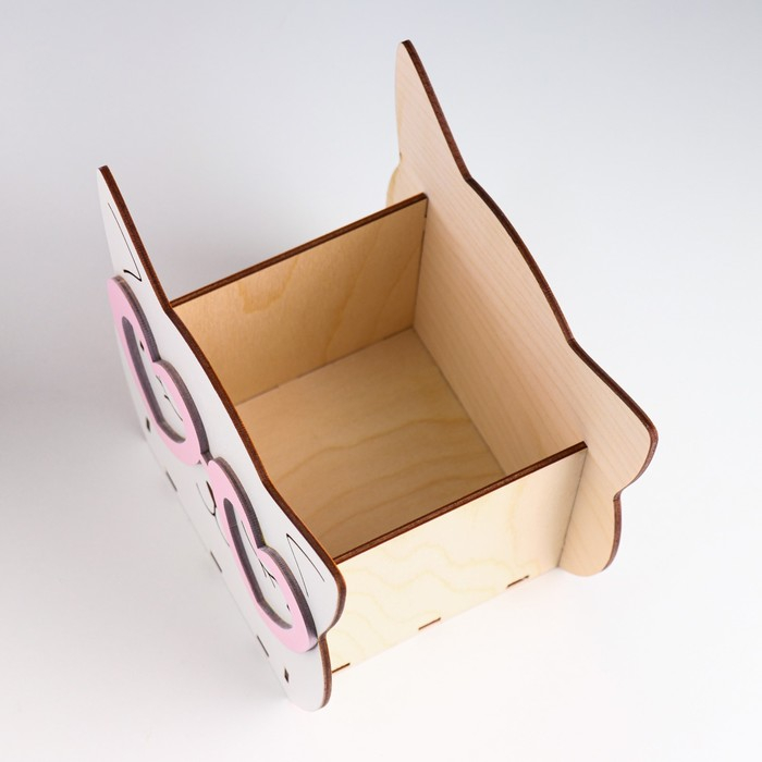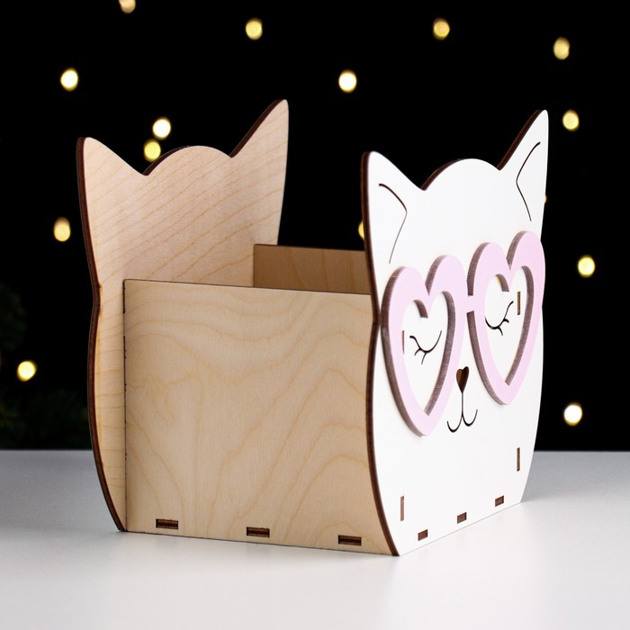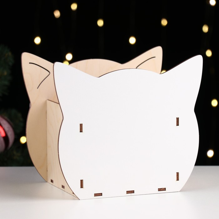 Кашпо деревянное для цветов и подарков "Кошечка" с аппликацией, белое, 18,8х12,8х16,7 см
