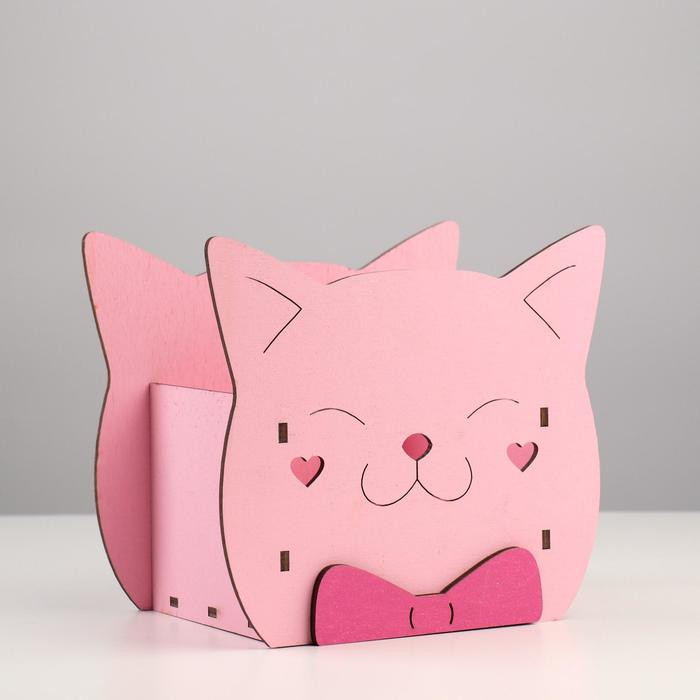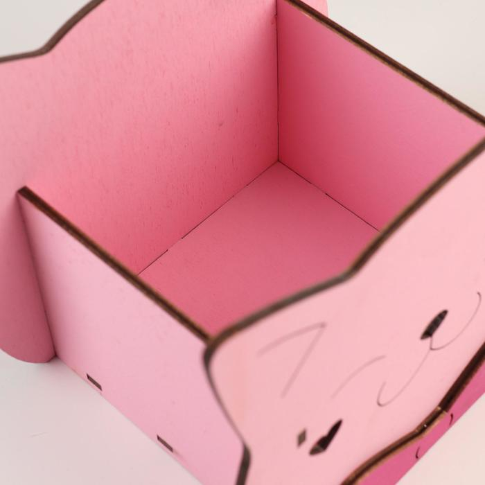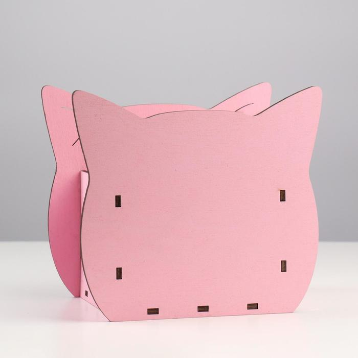 Кашпо деревянное для цветов и подарков "Котик" с аппликацией, розовое, 19х12х16 см