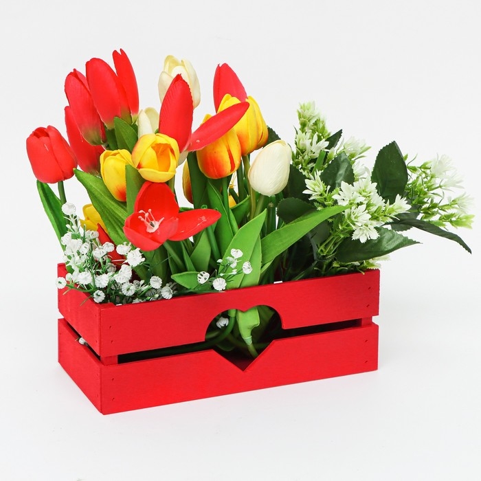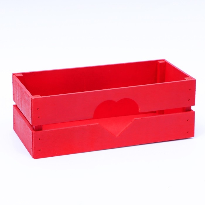 Кашпо деревянное, двухреечное "Сердце", красный, 24,5 х 11,5 х 9 см