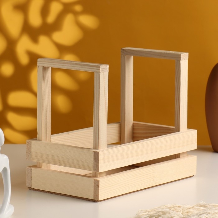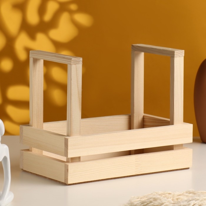 Кашпо деревянное двуреечное с ручками 24,5х14х19,5 см натуральное