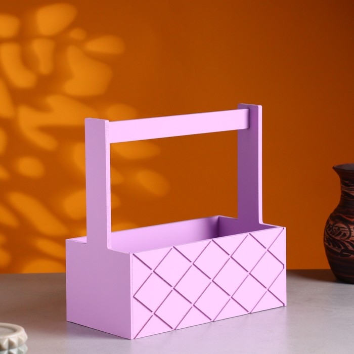 Кашпо деревянное "Эллада большая, сетка", с ручкой 25×12,5×10(25) см Сиреневый