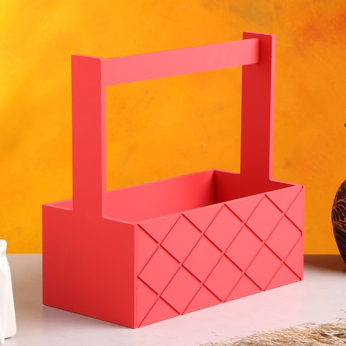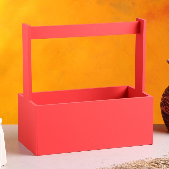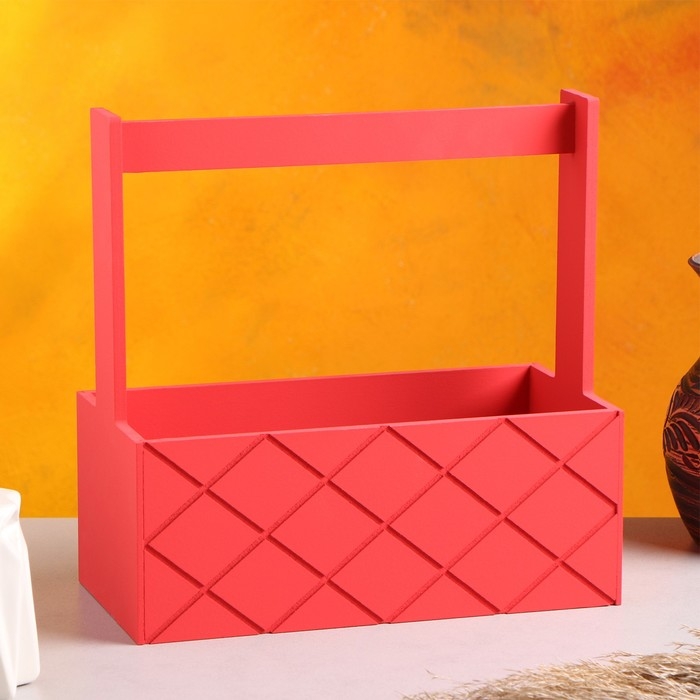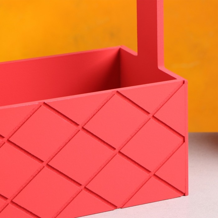 Кашпо деревянное "Эллада большая, сетка", с ручкой, красный, 25×12,5×10(25) см