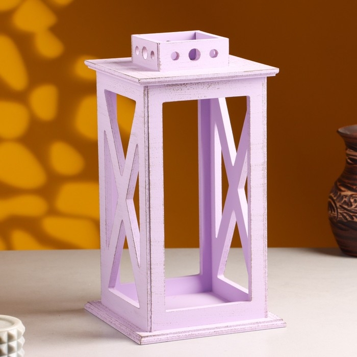 Кашпо деревянное "Фонарь. Прованс" 17х17х31 см Сиреневый