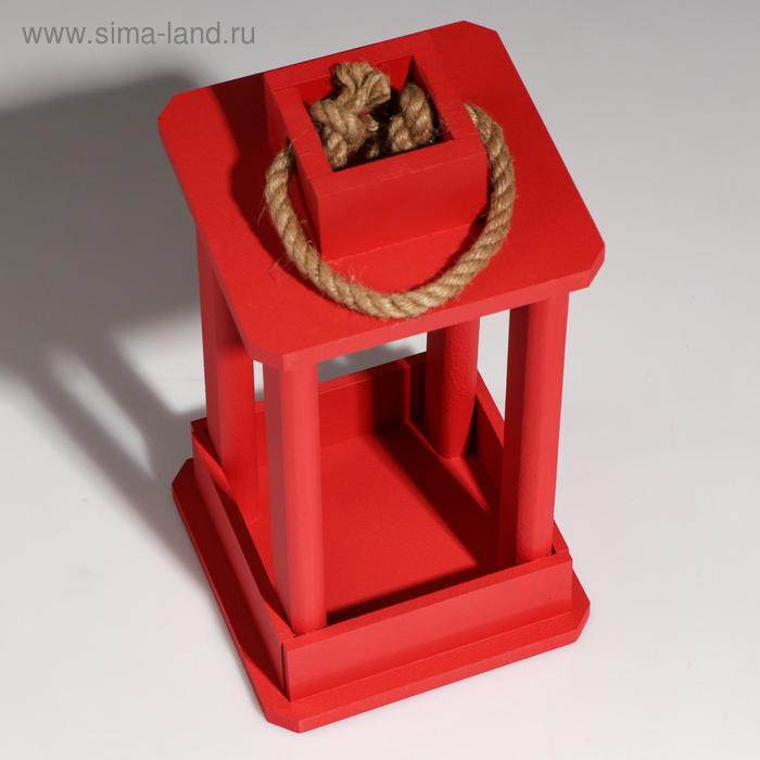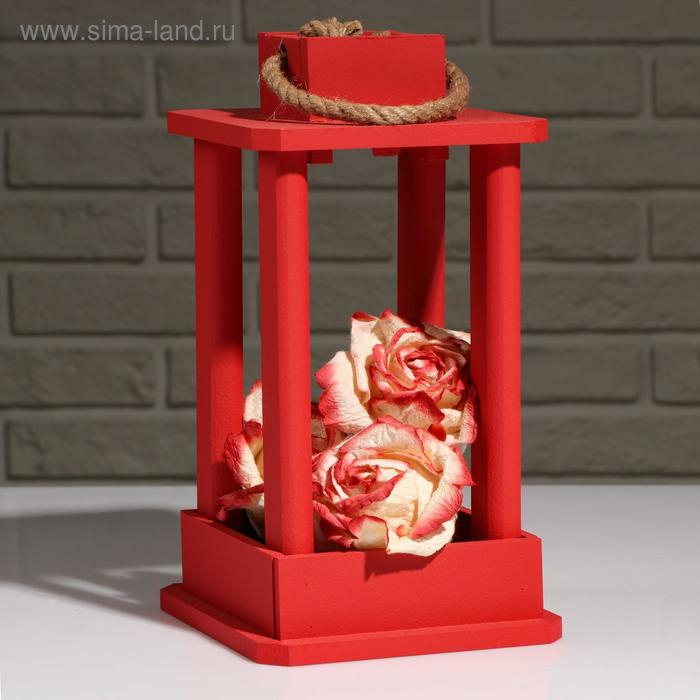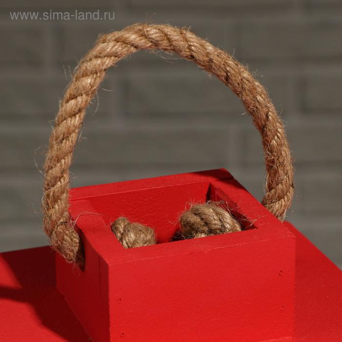 Кашпо деревянное "Фонарь", ручка верёвка, красный, 16×16×30 см