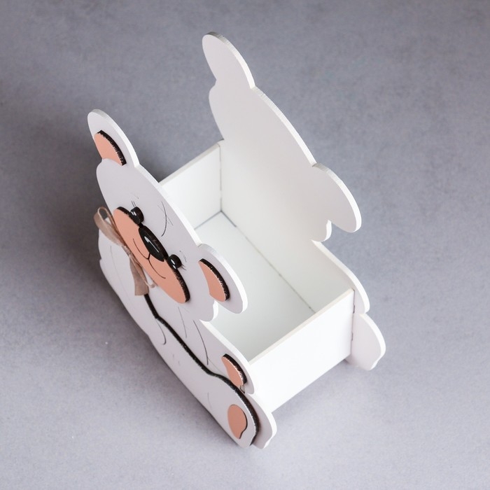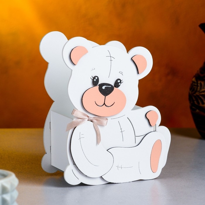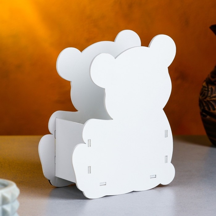 Кашпо деревянное "Мишутка" малый , 13,5х7х16,5 см, дуб , белый