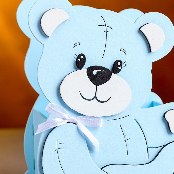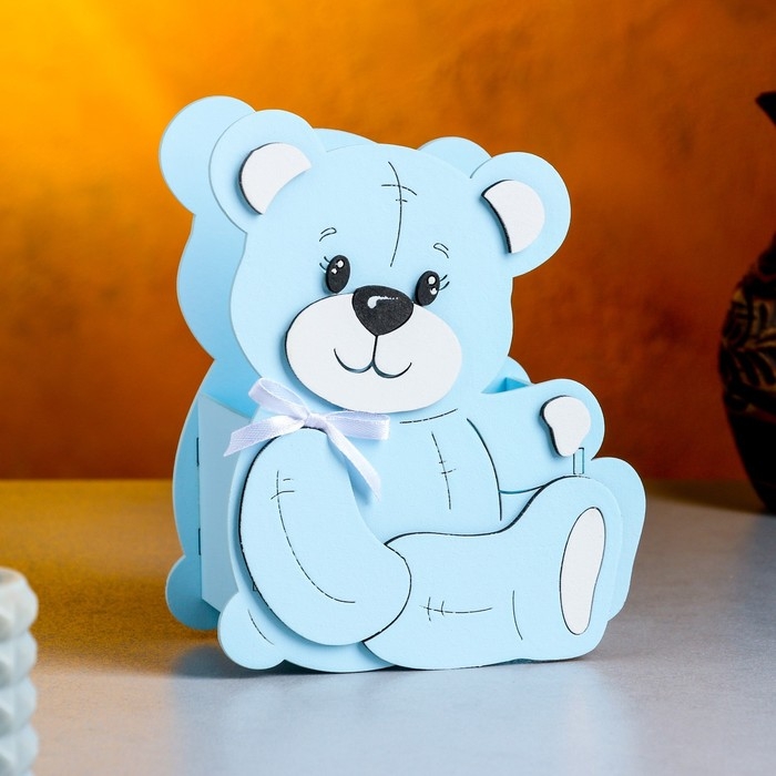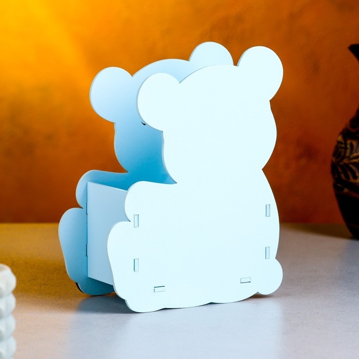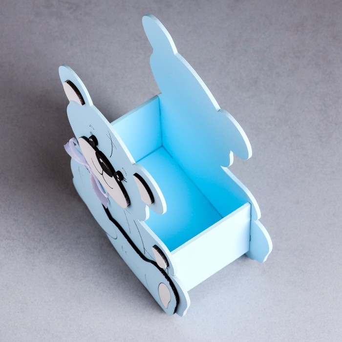 Кашпо деревянное "Мишутка" малый, 13,5х7х16,5 см, дуб, голубой