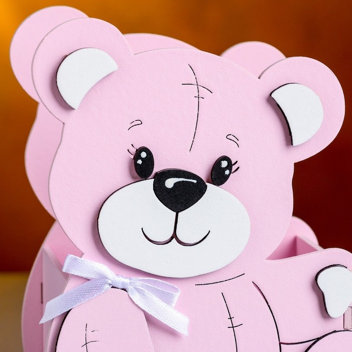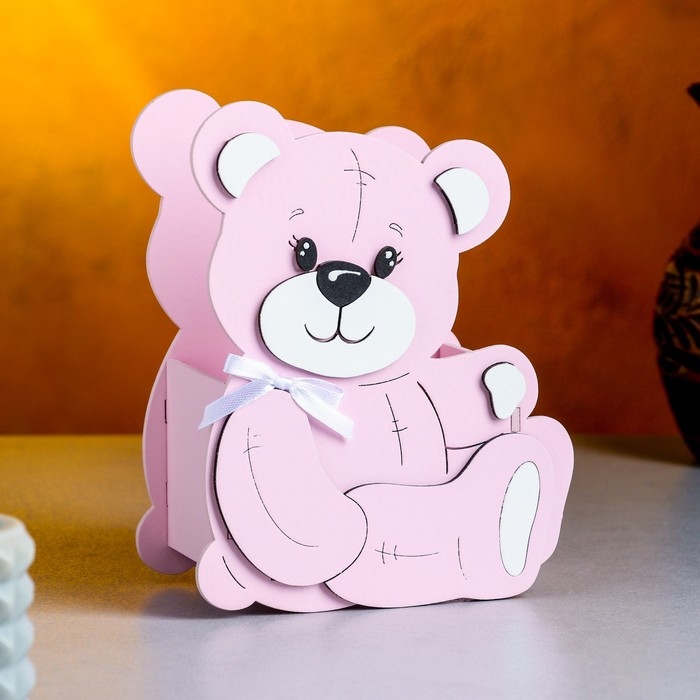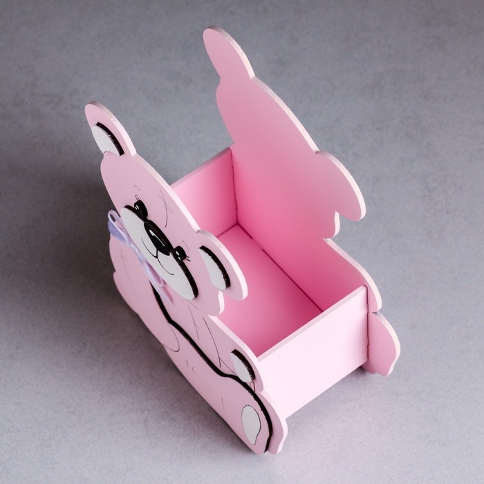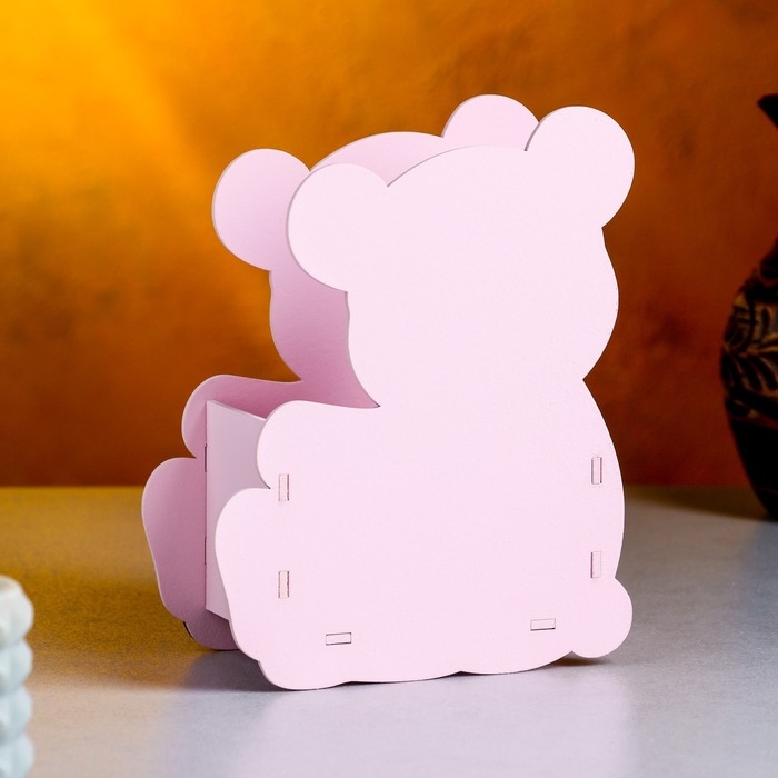Кашпо деревянное "Мишутка" малый, 13,5х7х16,5 см, дуб, розовый