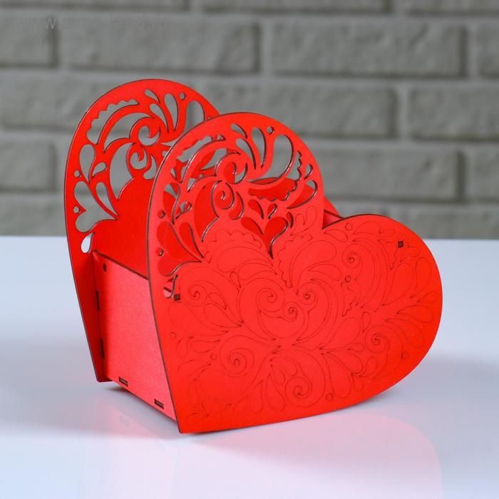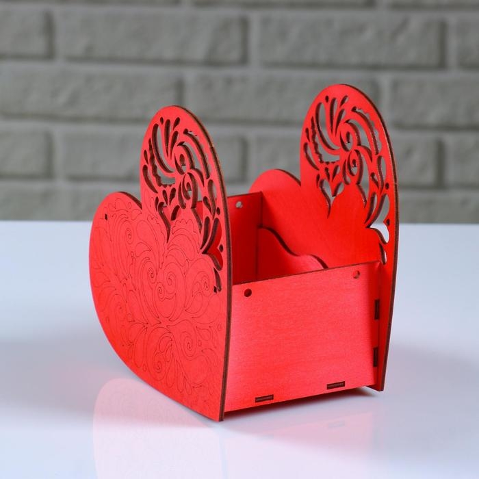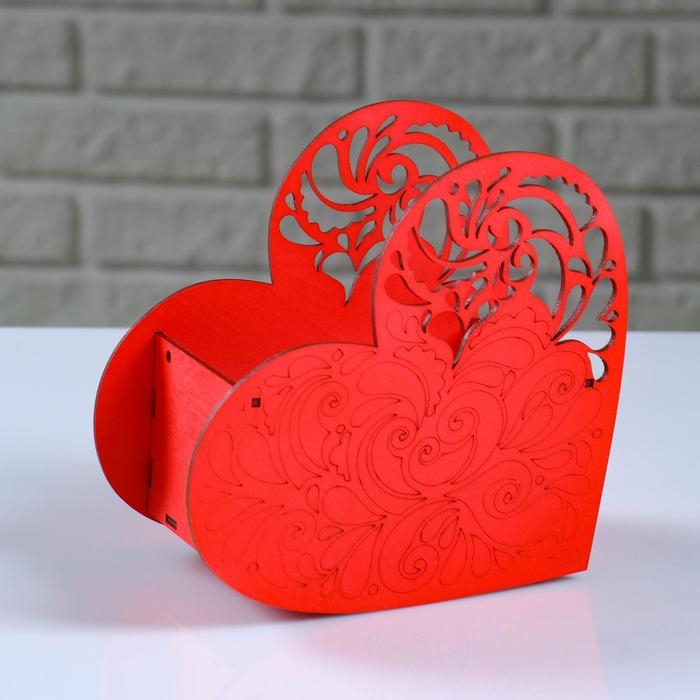 Кашпо деревянное "Сердце ажурное", красный, 18×8.6×14 см