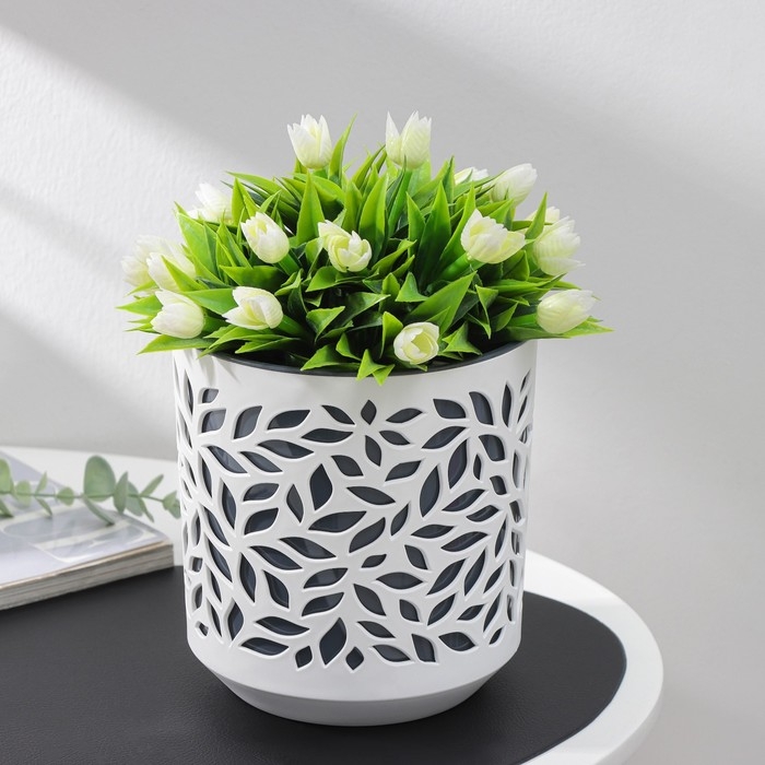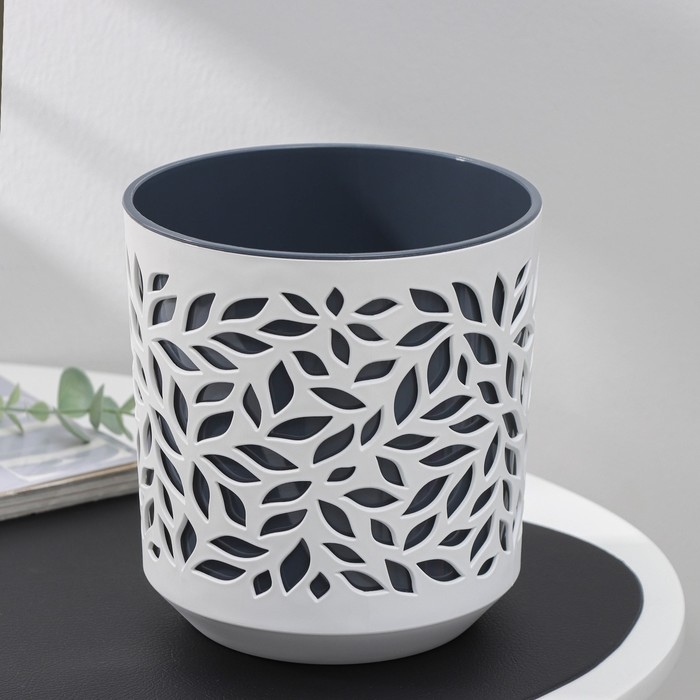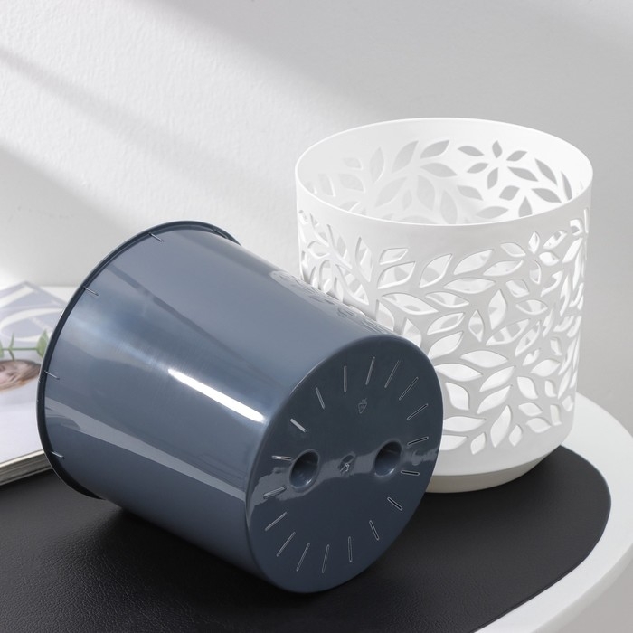 Кашпо для цветов со вставкой Leaves, 2,5 л, d=16,2 см, h=17 см, цвет белый/антрацит