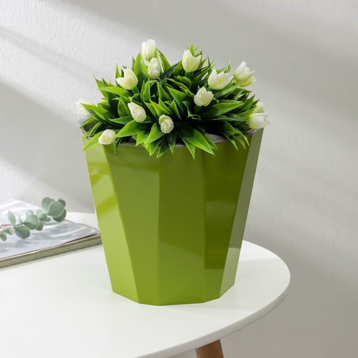 Кашпо для цветов со вставкой «Палермо», 3,6 л, цвет оливковый