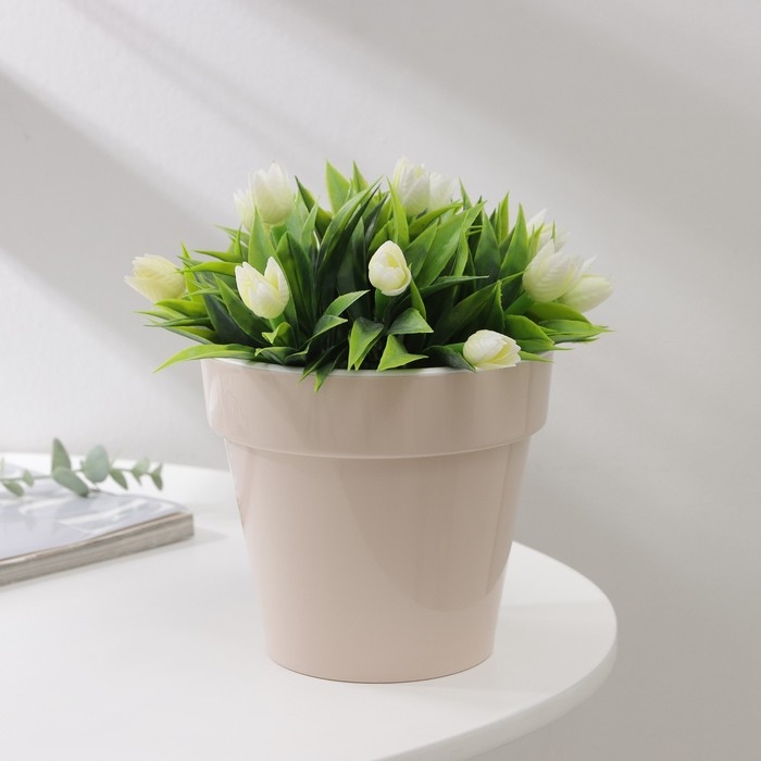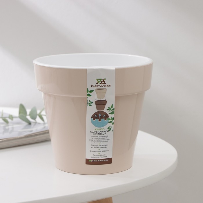 Кашпо для цветов со вставкой «Порто», 1 л, цвет жемчужный