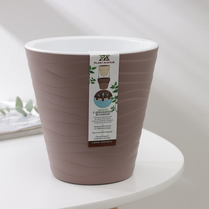 Кашпо для цветов со вставкой «Валенсия», 2 л, цвет мокко