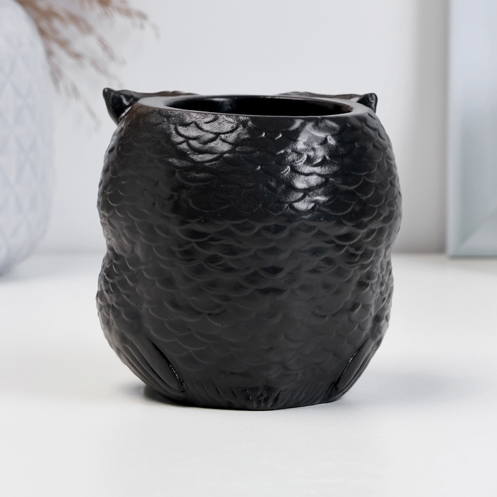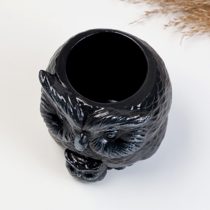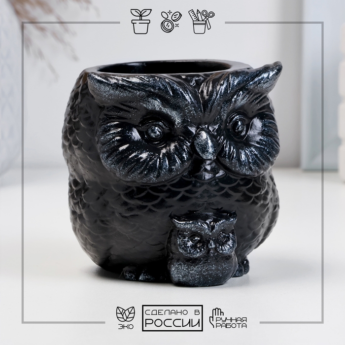 Кашпо фигурное "Сова с совенком" черное-серебро, 9см