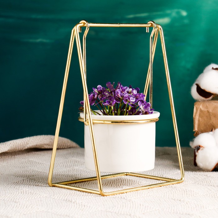 Кашпо "Качели" на золотой подставке, 16,5х12,5х8см